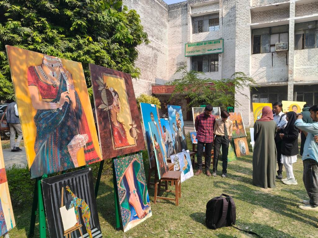 اوپن کورٹ یارڈ میں سجائی گئی اس نمائش میں اسکیچز، مکسڈ میڈیا کمپوزیشنز، تجریدی آرٹ، لینڈ اسکیپ اسٹڈیز، پورٹریٹس اور مختلف عصری سماجی و ثقافتی موضوعات پر مبنی تخلیقی پینٹنگز شامل تھیں۔ یہ نمائش نوجوان فنکاروں کے ارتقائی اسلوب، تکنیکی مہارتوں اور بصری اظہار کے نئے و تخلیقی طریقوں کی جھلک پیش کر رہی تھی۔