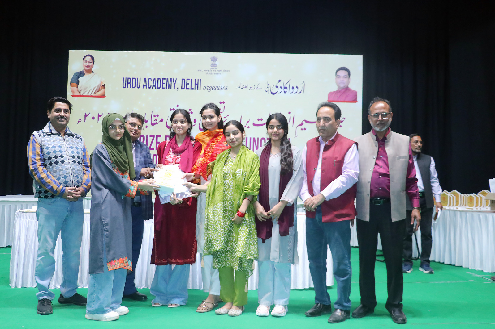 نئی دہلی: اردو اکادمی، دہلی کے زیرِ اہتمام سال 2025ء کے تعلیمی و ثقافتی مقابلوں میں کامیاب طلبہ کے اعزاز میں ایوانِ غالب، ماتا سندری لین، نئی دہلی میں جلسۂ تقسیمِ انعامات منعقد ہوا۔ تقریب میں دہلی کے مختلف اسکولوں کے طلبہ و طالبات، اساتذہ اور والدین نے شرکت کی۔یہ تعلیمی مقابلے20اگست تا8ستمبر2025ء اردو اسکولوں کے طلبا و طالبات کے درمیان منعقد کیے گئے تھے، جن میں تحریری امتحانات ، مضمون نویسی،تقریری، کوئز، غزل سرائی، اردو ڈراما، بیت بازی، گروپ سانگ ، بلند خوانی اور امنگ پینٹنگ جیسے متنوع مقابلے شامل تھے، جن تقریباً 1663 طلبا وطالبات نیان مقابلوں میں حصہ لیا تھا، جن میں سے 265 طلبہ مختلف زمروں میں کامیاب قرار پائے گئے تھے۔