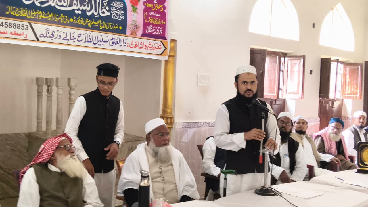 جالے :دارالعلوم سبیل الفلاح، جالے میں منعقدہ انعامی و دعائیہ اجلاس میں آل انڈیا مسلم پرسنل لا بورڈ کے صدر مولانا خالد سیف اللہ رحمانی نے خطاب کرتے ہوئے کہا کہ نئی نسل کی کردار سازی اور دینی شعور کے استحکام کے لیے ہر گلی محلے میں مکاتب کا قیام وقت کی اہم ضرورت ہے۔انہوں نے کہا کہ آج ایک منصوبہ بند طریقے سے مدارس کے خلاف سازشیں رچی جارہی ہیں اور عام مسلمانوں کا رشتہ دینی اداروں سے کمزور کرنے کی کوشش کی جارہی ہے، لیکن یہ حقیقت فراموش نہیں کی جاسکتی کہ مدارس دراصل وہ پاور ہاؤس ہیں جہاں سے سماج کو سلیقے سے جینے کا حوصلہ اور راستہ ملتا ہے۔