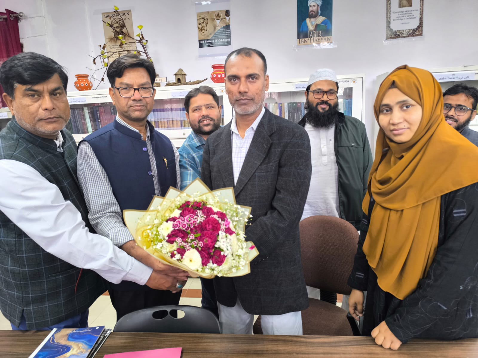 لکھنؤ:خواجہ معین الدین چشتی لینگویج یونیورسٹی میں شعبۂ عربی کے نئے سربراہ کے طور پر ڈاکٹر عبدالحفیظ کو محکمہ جاتی سربراہی کی ذمہ داری سونپی گئی ہے۔ اس موقع پر یونیورسٹی کے وائس چانسلر پروفیسر اجے تنیجا سمیت تمام اساتذۂ کرام نے ڈاکٹر عبدالحفیظ کو دل کی گہرائیوں سے مبارکباد پیش کی اور ان کے روشن مستقبل کے لیے نیک تمناؤں کا اظہار کیا۔شعبۂ عربی یونیورسٹی کی اہم اور فعال علمی شعبوں میں شمار ہوتا ہےجہاں زبان و ادبِ عربی، اسلامیات، ترجمہ نگاری، لسانیات اور تحقیق کے میدان میں معیاری تدریس و تربیت کا سلسلہ جاری ہے۔ اس شعبے کے تحت یو جی، پی جی اور پی ایچ ڈی سطح پر تعلیم فراہم کی جاتی ہے اور طلبہ کی علمی و تحقیقی صلاحیتوں کو نکھارنے کے لیے وقتاََ فوقتاََ سیمینارز، ورکشاپس، توسیعی خطبات اور علمی نشستوں کا انعقاد بھی کیا جاتا ہے۔